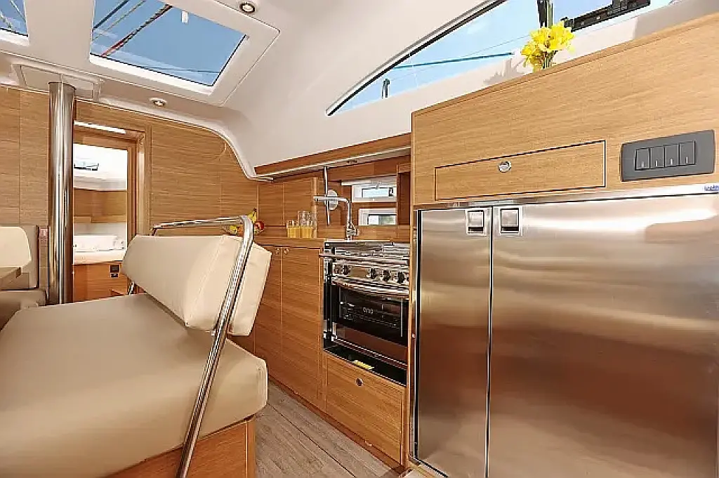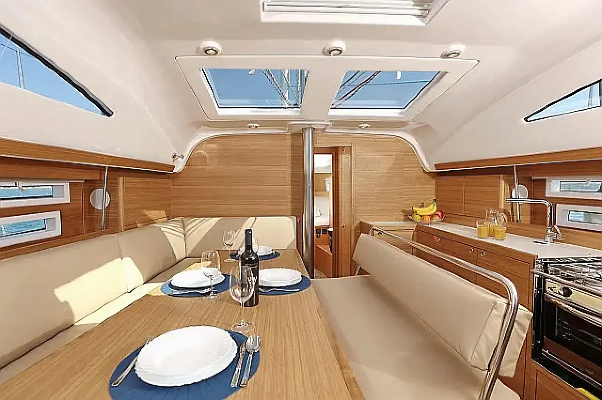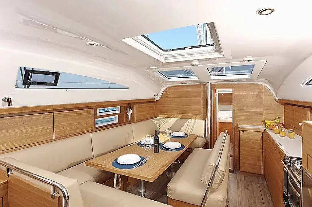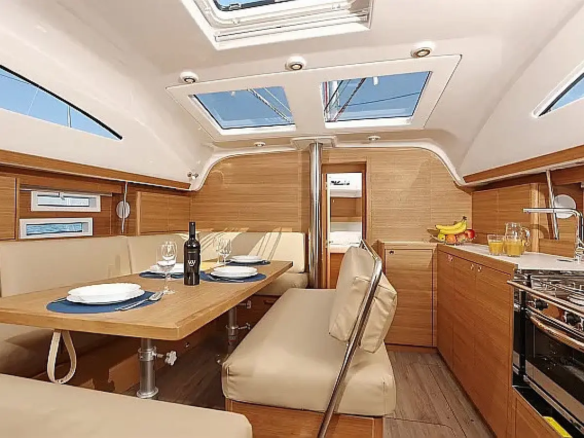 Air condition, Swimming platform, Bimini, Cockpit cushions, Cockpit speakers, Refrigerator, Heating, Holding tank, Inverter, Solar Panels, Sprayhood, Teak Cockpit, Wi-Fi & Internet