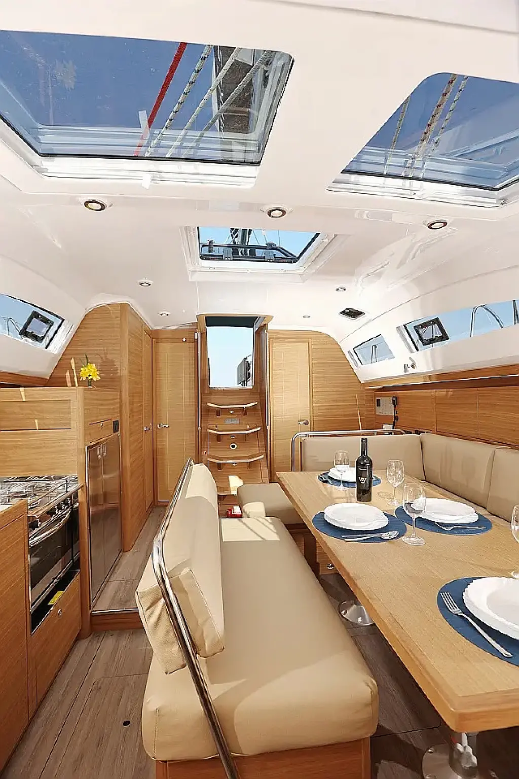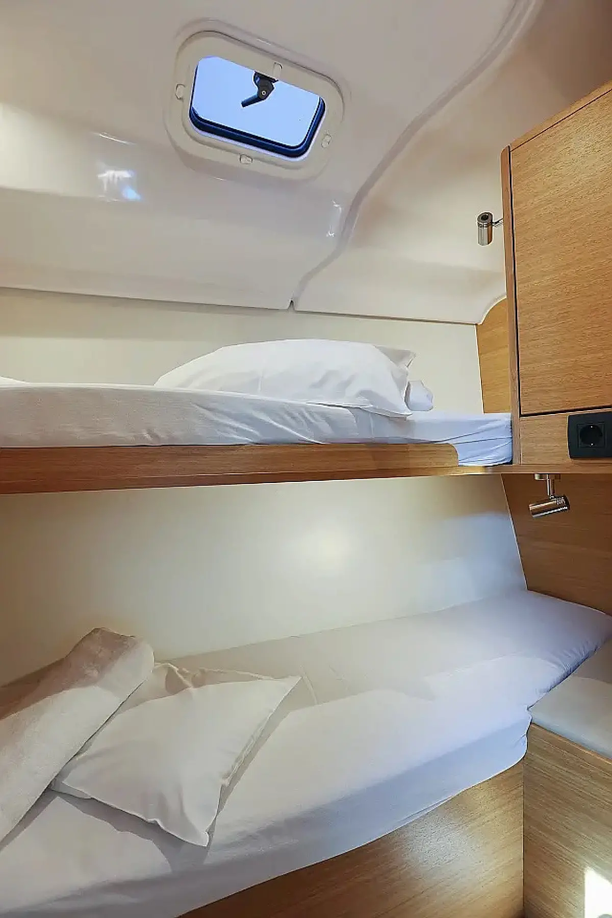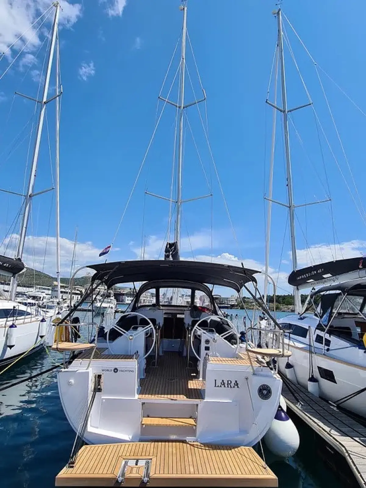 Air condition, Swimming platform, Bimini, Cockpit cushions, Cockpit speakers, Refrigerator, Heating, Holding tank, Inverter, Solar Panels, Sprayhood, Teak Cockpit, Wi-Fi & Internet